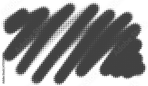 Halftone noisy gradient paint brush stroke. Dotted blobs. Abstract grunge element.