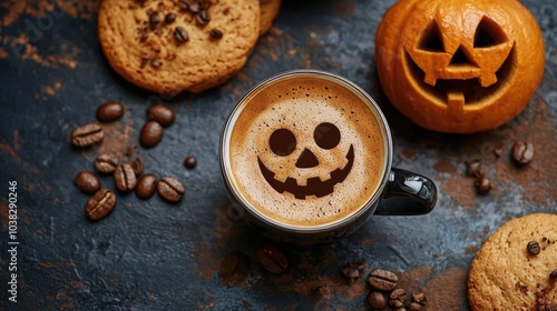 Halloween coffee and cookies. selective focus