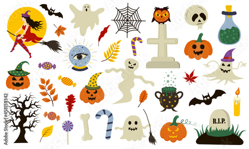 Halloween collection with hand drawn elements. Perfect for holiday, decoration, stickers.