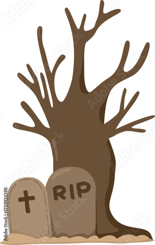 Halloween Graveyard and Dried Tree Illustration