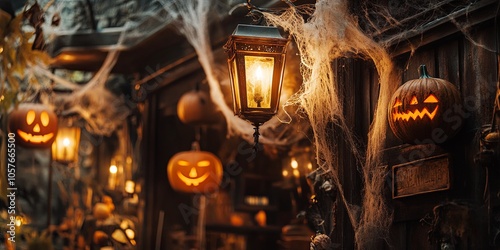 Halloween Lantern Pumpkins Decorated With Cobwebs