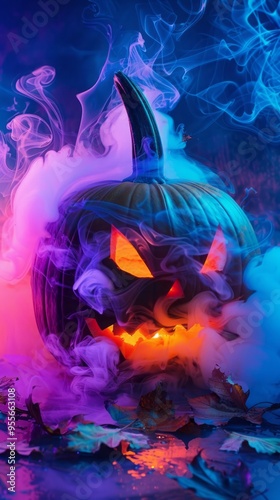 halloween pumpkin with neon light.
