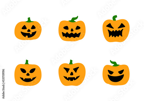 Halloween pumpkins flat line icons set. Simple flat vector illustration for web site or mobile app