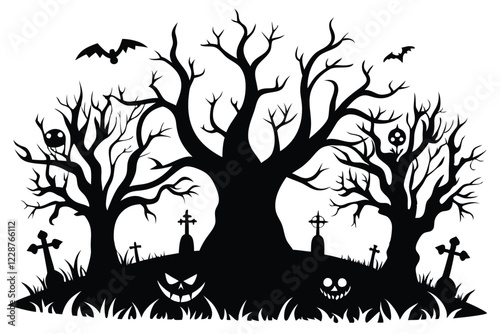 Halloween Scary Trees Silhouette Vector