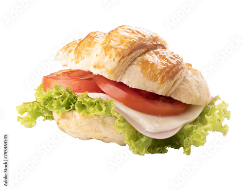 Ham cheese tomato and lettuce croissant on white isolated on transparent background