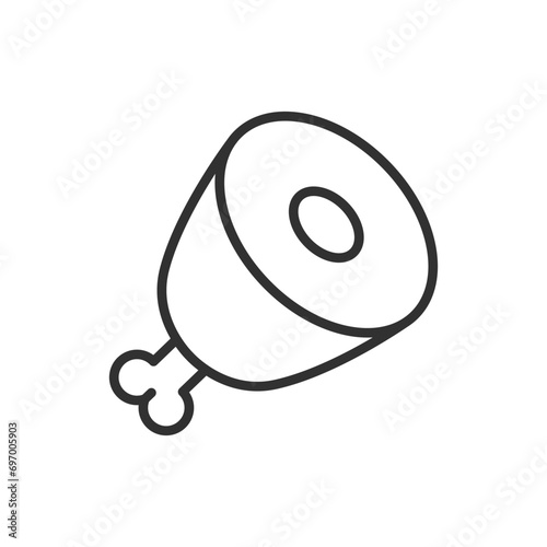 Ham. Meat on the bone, linear icon. Line with editable stroke