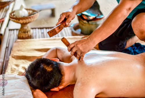 Hammering the lines to relax is an ancient massage method in northern Thailand.
