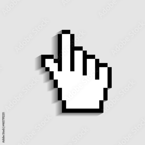 Hand cursor icon. Finger - pointer of mouse. Pixel icon in form hand cursor for click in web, computer and internet. Graphic symbol for digital link, www, website. Isolated sign for screen. Vector.