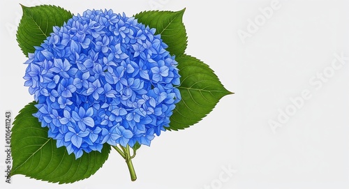 Hand drawing clipart of a blue hydrangea cluster on plain white background