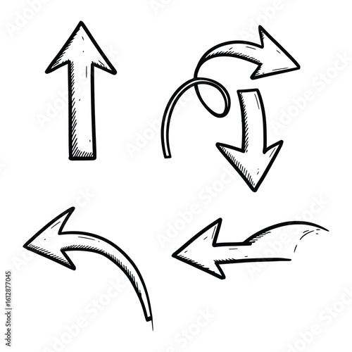 Hand Drawn Arrow Set Up Down Left Right Curve