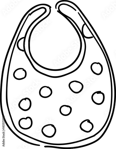 Hand drawn Baby Shower doodle clipart. Simple outline of a bib with polka dots, suitable for baby-related themes.