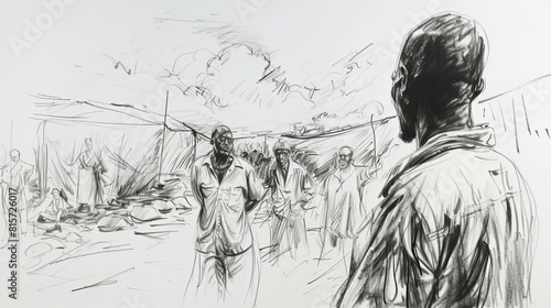Hand drawn basic sketch with pencil showing random village people