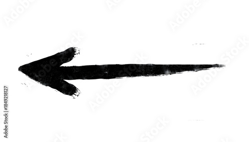 Hand Drawn Black Arrow Pointing Left, Brush Stroke Style Isolated on Transparent Background