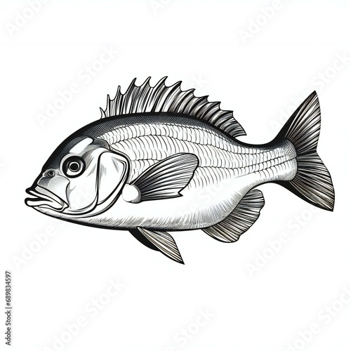 hand drawn black white fish