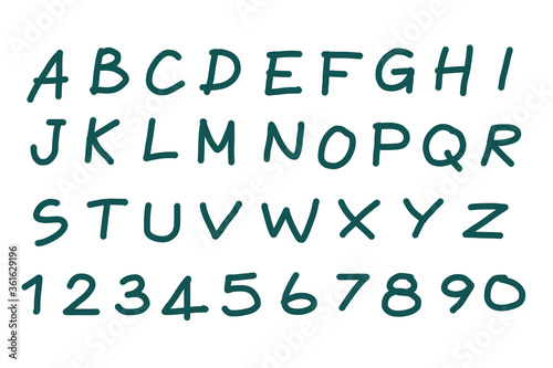 Hand Drawn Brush Ink ABC Upper Case Letters Set, Doodle Comic Font For Your Design.