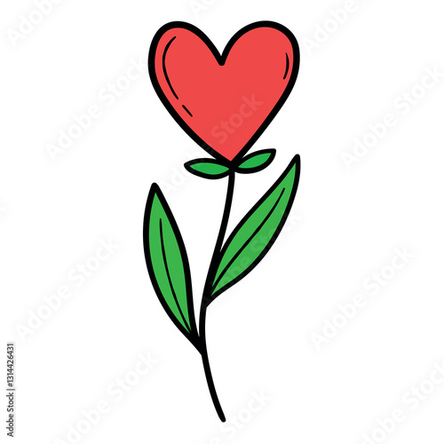 Hand drawn cartoon heart flower on white background.