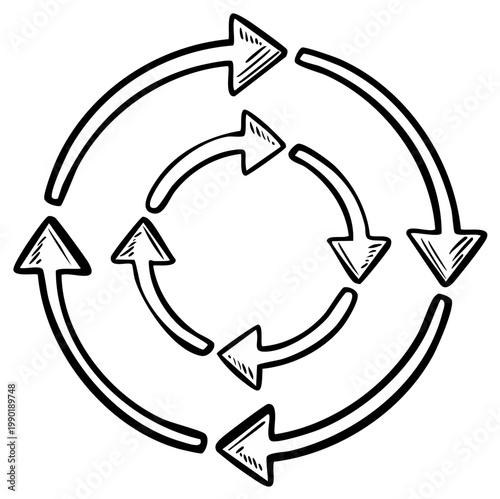 Hand Drawn Circular Arrows Illustrating a Repeating Process or Cycle