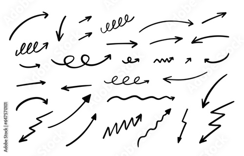 Hand drawn different direction arrows set icons