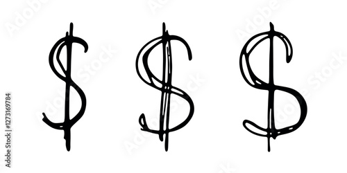 Hand drawn dollar currency symbol set Brush stroke doodle Single element for design