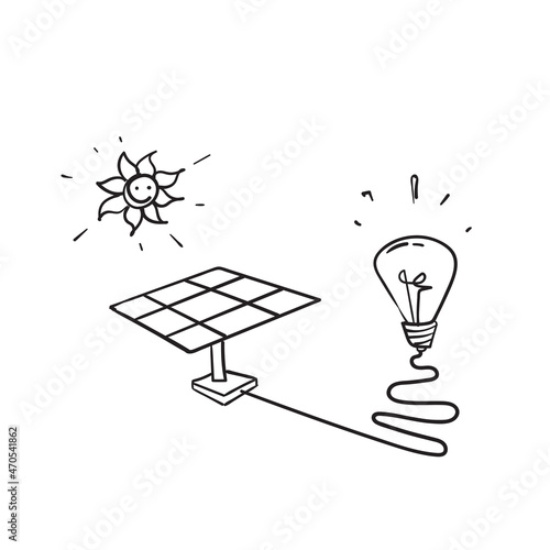 hand drawn doodle solar panel and light bulb symbol for solar energy illustration