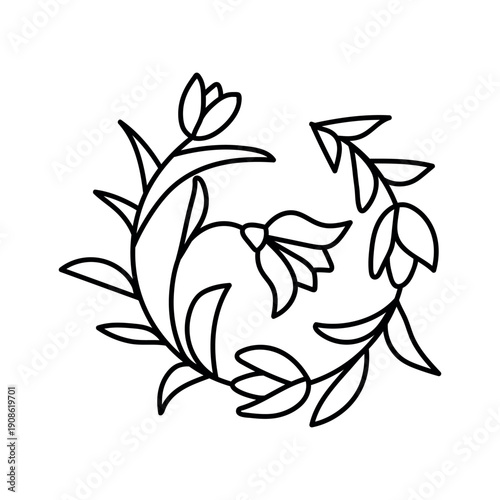 Hand drawn floral ornament. Doodles vector illustration. Isolated on a white background. Floral pattern with tulip wreath