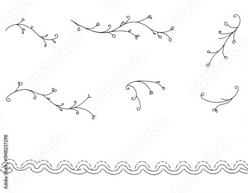 Hand Drawn Floral Swirls Wave Border Design Elements Craft Decor