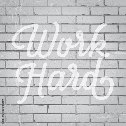 Hand drawn lettering slogan on brick wall background