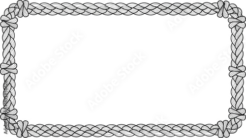 Hand Drawn Nautical Rope Frame Vector Illustration Set, Twisted Cord Border, Sailor Knot Rectangle Shape, Decorative Maritime Twine Frame for Coastal Themed Designs,