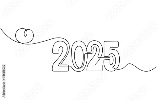 Hand drawn number lettering of 2025 in one line art style Happy New Year