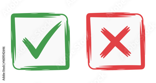 hand drawn tick and cross icon with brush stroke checkbox