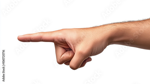 Hand gesture, hand pointing forward, indicating direction or emphasis, showcasing detail and clarity, isolate on white background