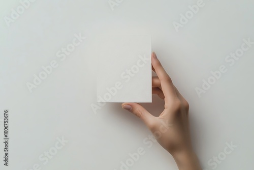 Hand holding a blank white card isolated on a white background. Mockup for message, text, copy space, note, or presentation