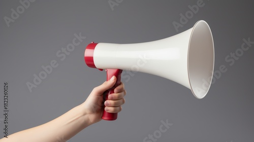 Hand holding a megaphone for announcements.