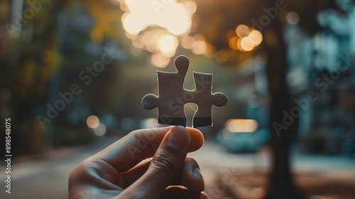 Hand Holding a Puzzle Piece: A hand holding a single puzzle piece, symbolizing problem-solving and fitting pieces together.