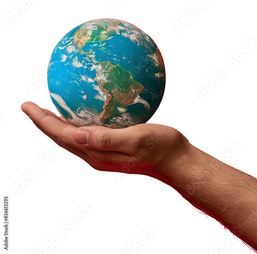 Hand holding a small globe, representing global unity
