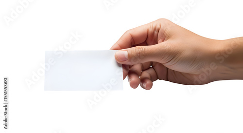 Hand holding blank business card isolated on white background