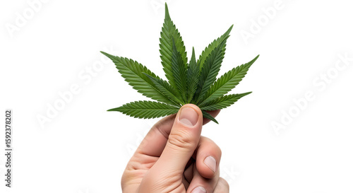 hand holding cannabis leaf, marijuana, transparent background