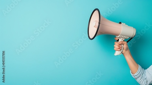 Hand holding megaphone, marketing and sales