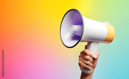 Hand holding megaphone, marketing and sales, pastel background.