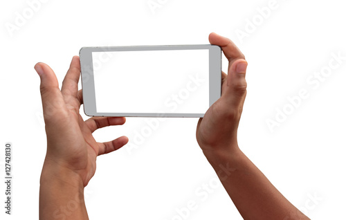 hand holding smart phone for take photograph.