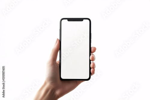 Hand holding smartphone with blank screen minimalistic background digital device modern technology perspective