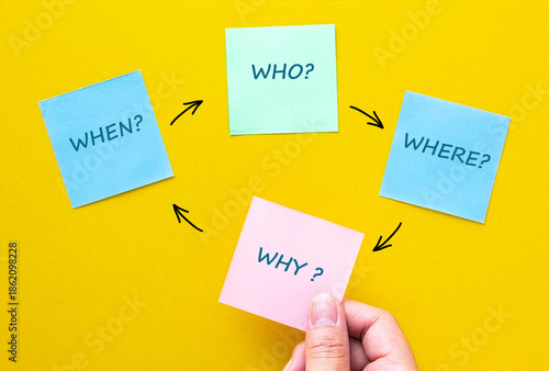 Hand holding sticky note with why question