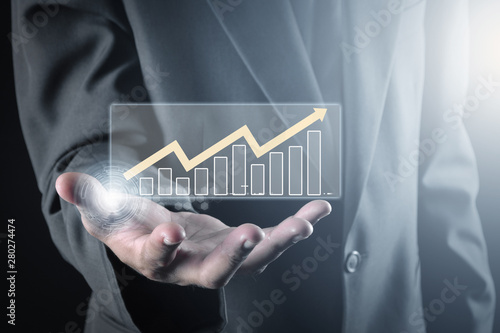 Hand holding transparent screen with chart
