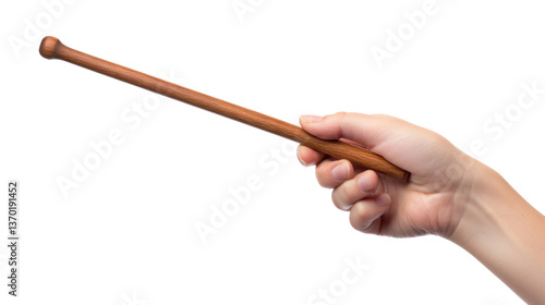 Hand Holding Wooden Dowel Isolated on White Background Carpenter’s Tool for Woodworking, DIY Projects, and Precision Craftsmanship