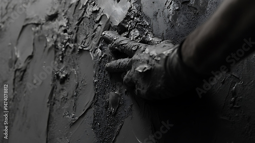 Hand in Glove Applying Cement to a Wall