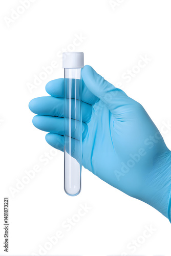 Hand in Glove Holding Empty Test Tube Isolated On White