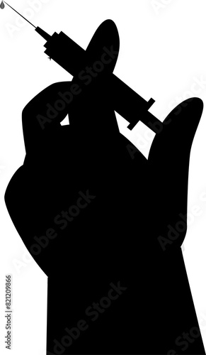 Hand in medical blue glove holding syringe with vaccine. Vaccination or medicare concept. Injection syringe with sharp needle in hand. COVID-19 coronavirus vaccine. Vector realistic illustration.