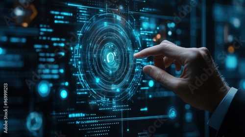 Hand Interacting with a Futuristic Digital Interface