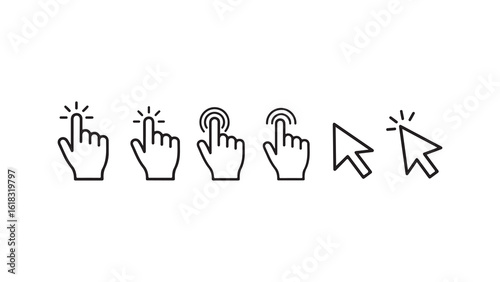 Hand interaction icons and computer mouse cursor outline