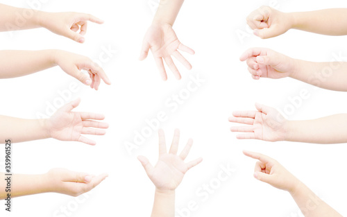 hand of fat girl collection isolated on white background in gestures
